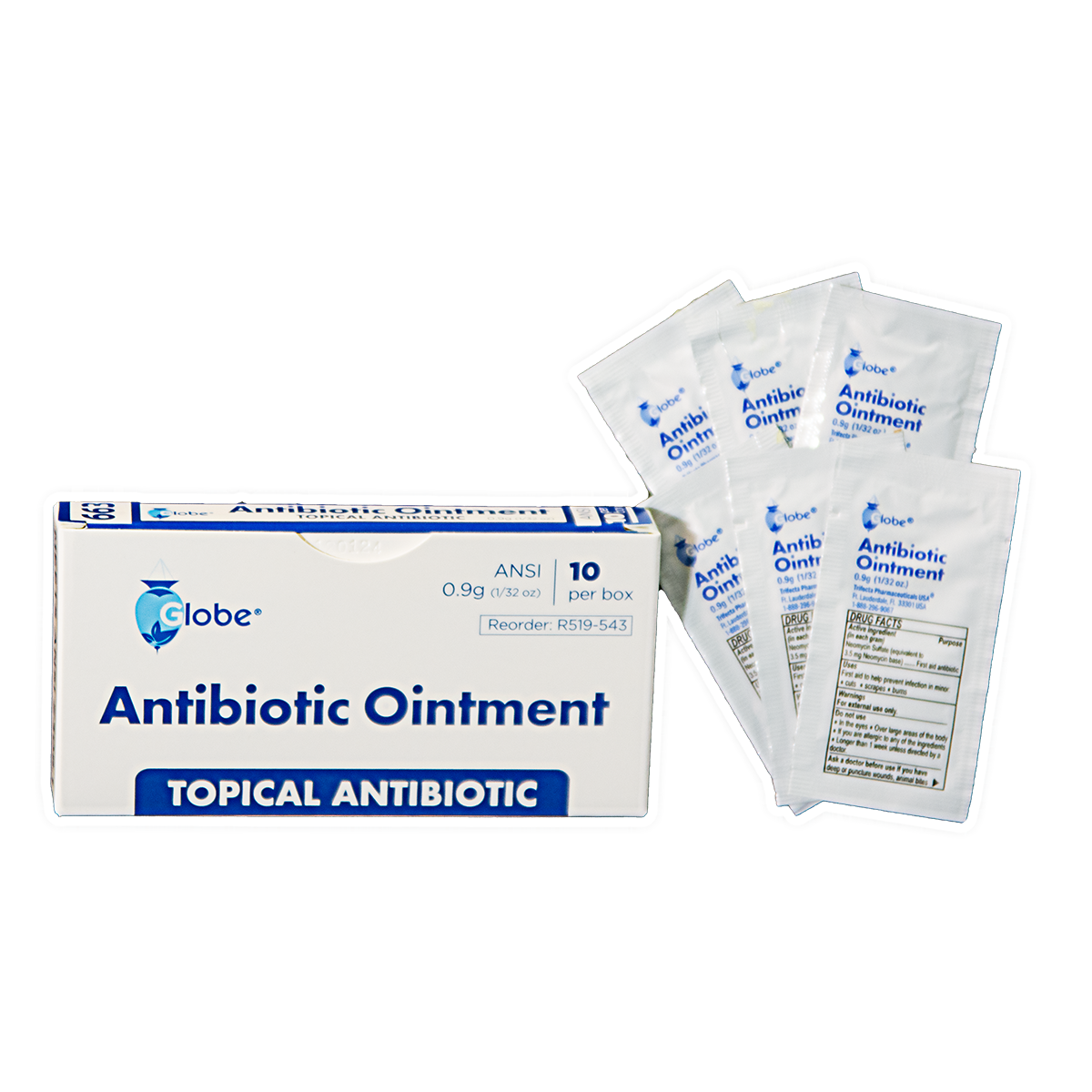 Antibiotic ointment helps prevent infection in minor cuts, scrapes, and burns by inhibiting bacterial growth and supporting faster, cleaner healing. Included as a core component of American National Standards Institute Class A and Class B first aid kits, it provides an added layer of protection after wound cleaning and before bandaging. Single-use packets ensure hygienic application, controlled dosing, and dependable readiness in any workplace environment.
