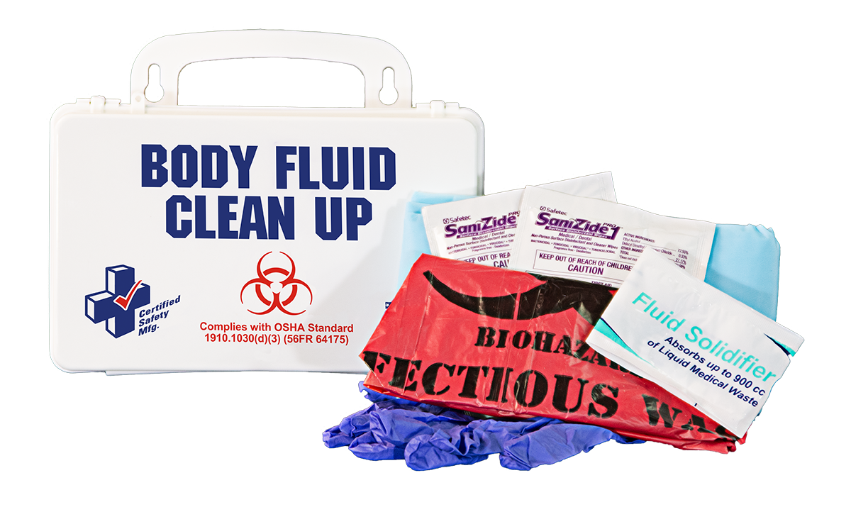• Provides clean up and disposal for bodily fluids