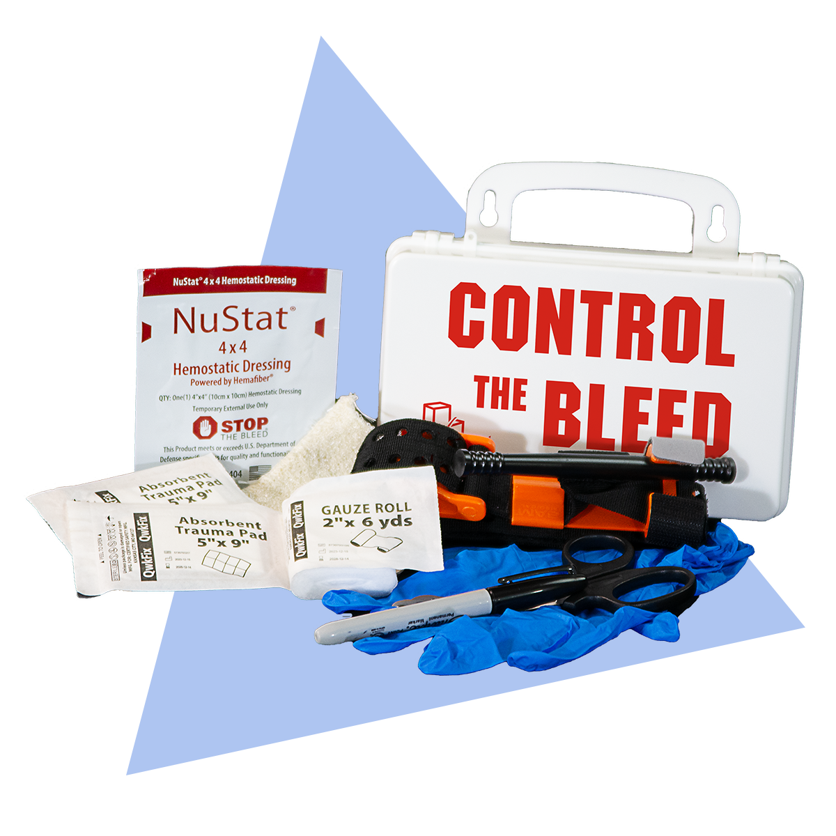 Compact, durable design fits easily into ANSI first aid kits, trauma bags, and jobsite bleed control stations.